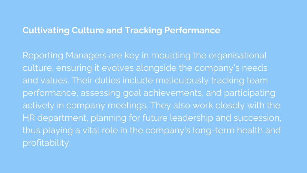 While both roles demand leadership and management acumen, they diverge in their core focuses. The Reporting Manager is the linchpin of internal team dynamics, performance management, and cultural development. In contrast, the Executive Manager is instrumental in broader operational management, strategic alignment, and achieving the overarching goals of the company.